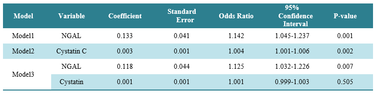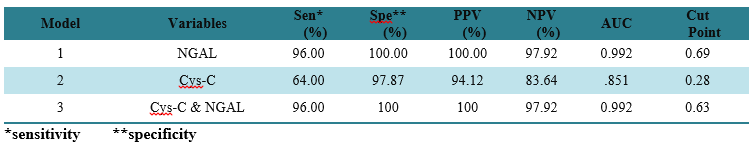 Table 1. Results of logistic regression model for determining the power of NGAL and Cys-C in predicting kidney damage